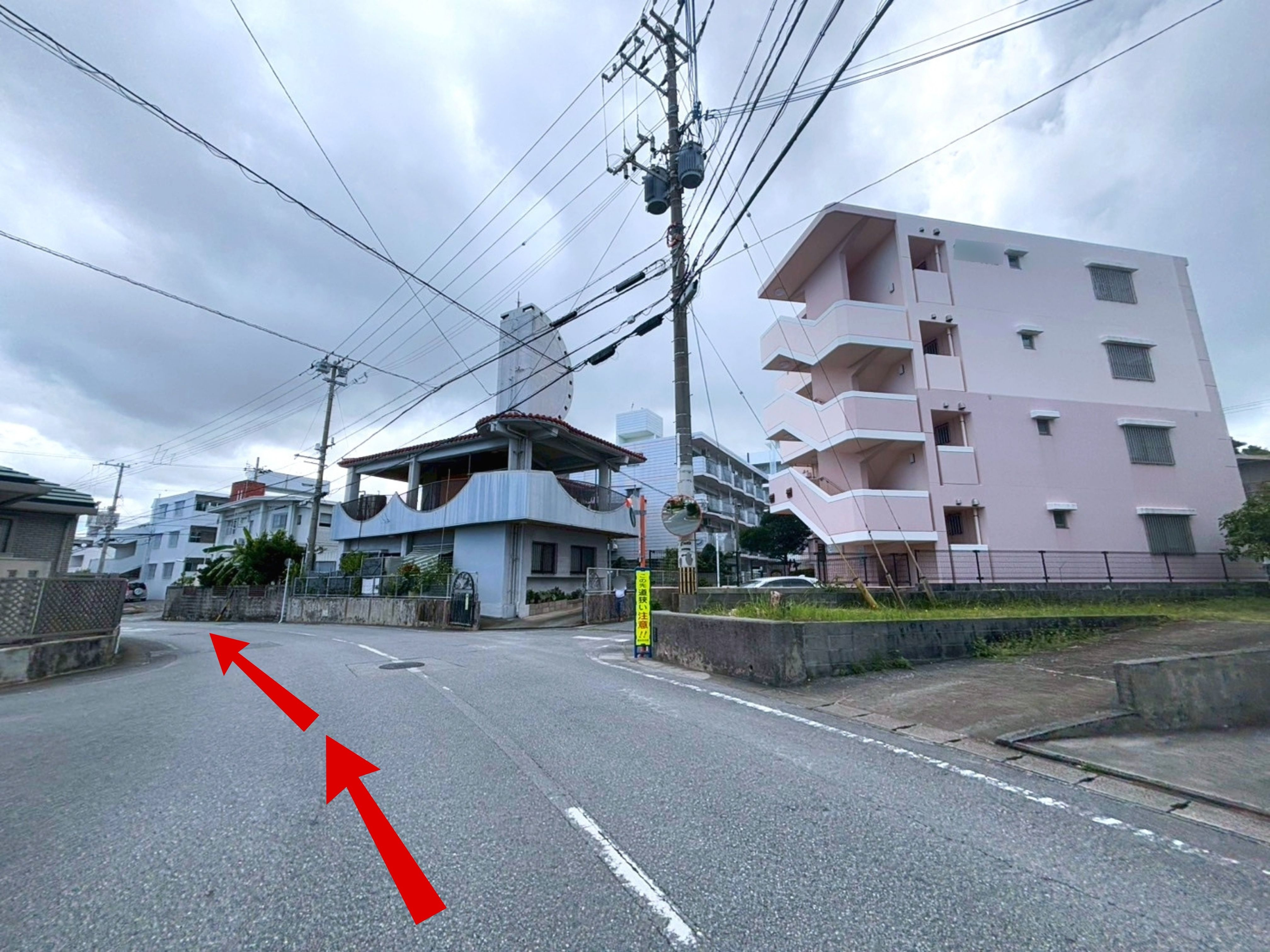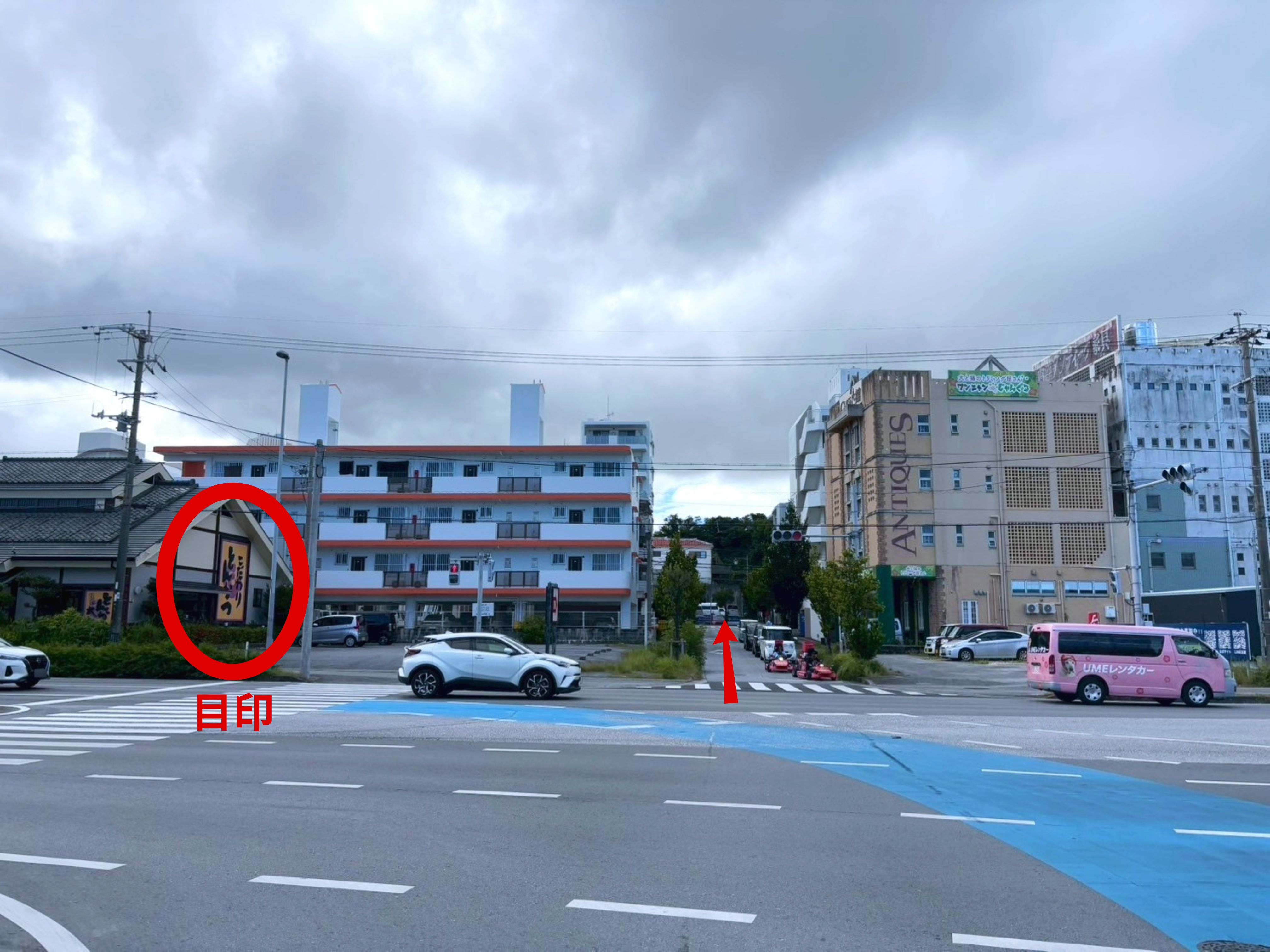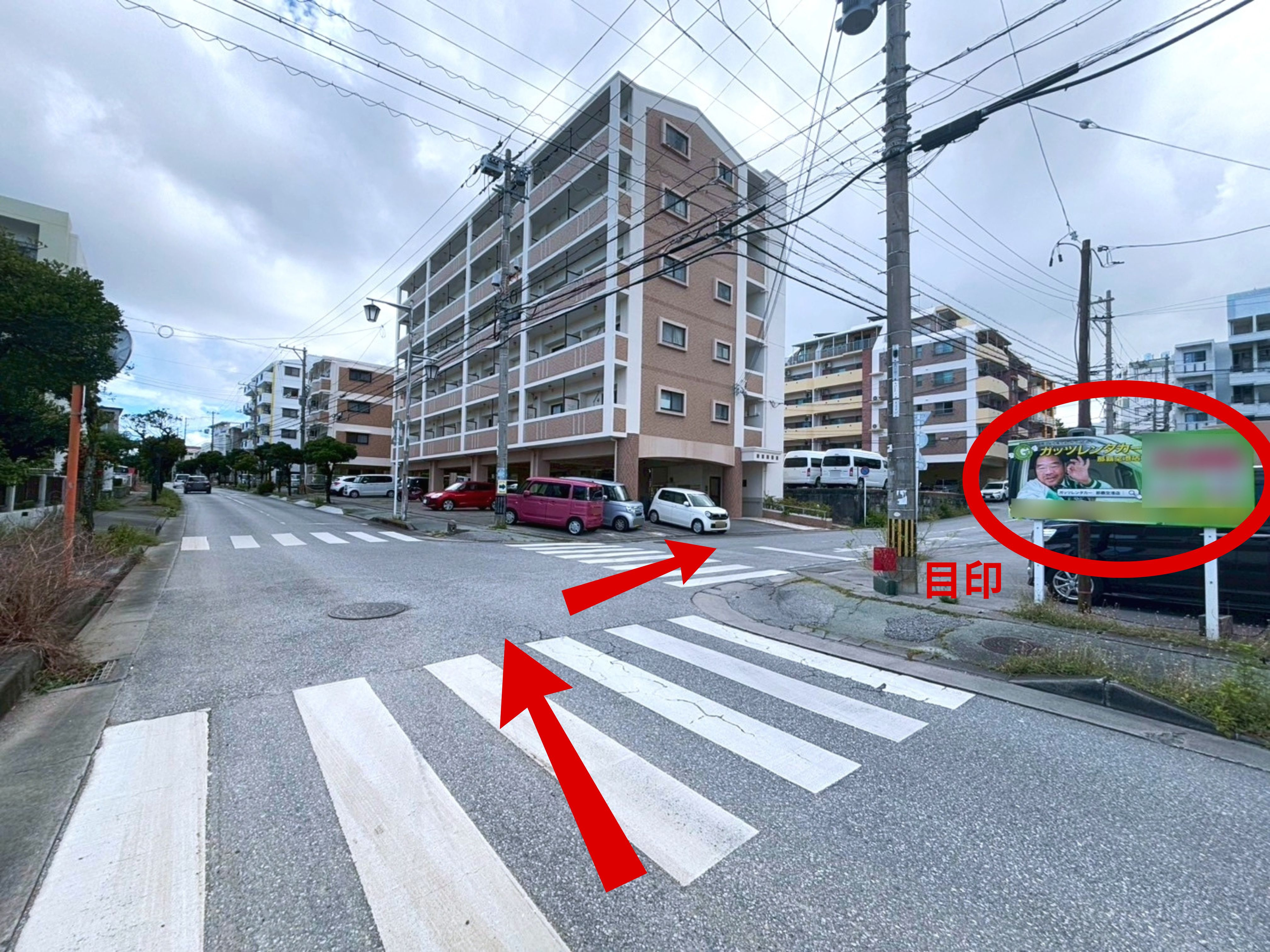 ◆目印の【とんかつ太郎 小禄店】の交差点から住宅街にはいります