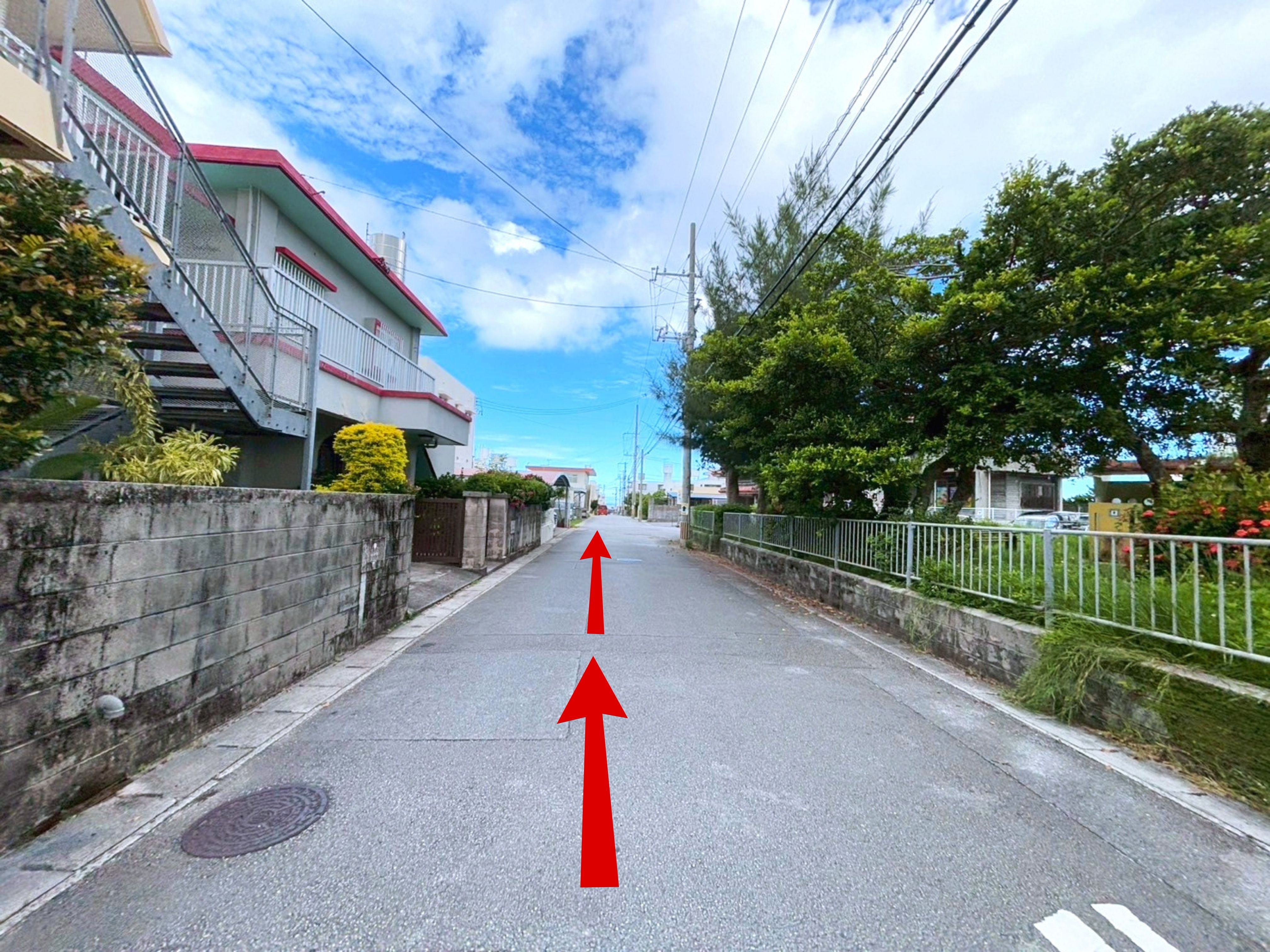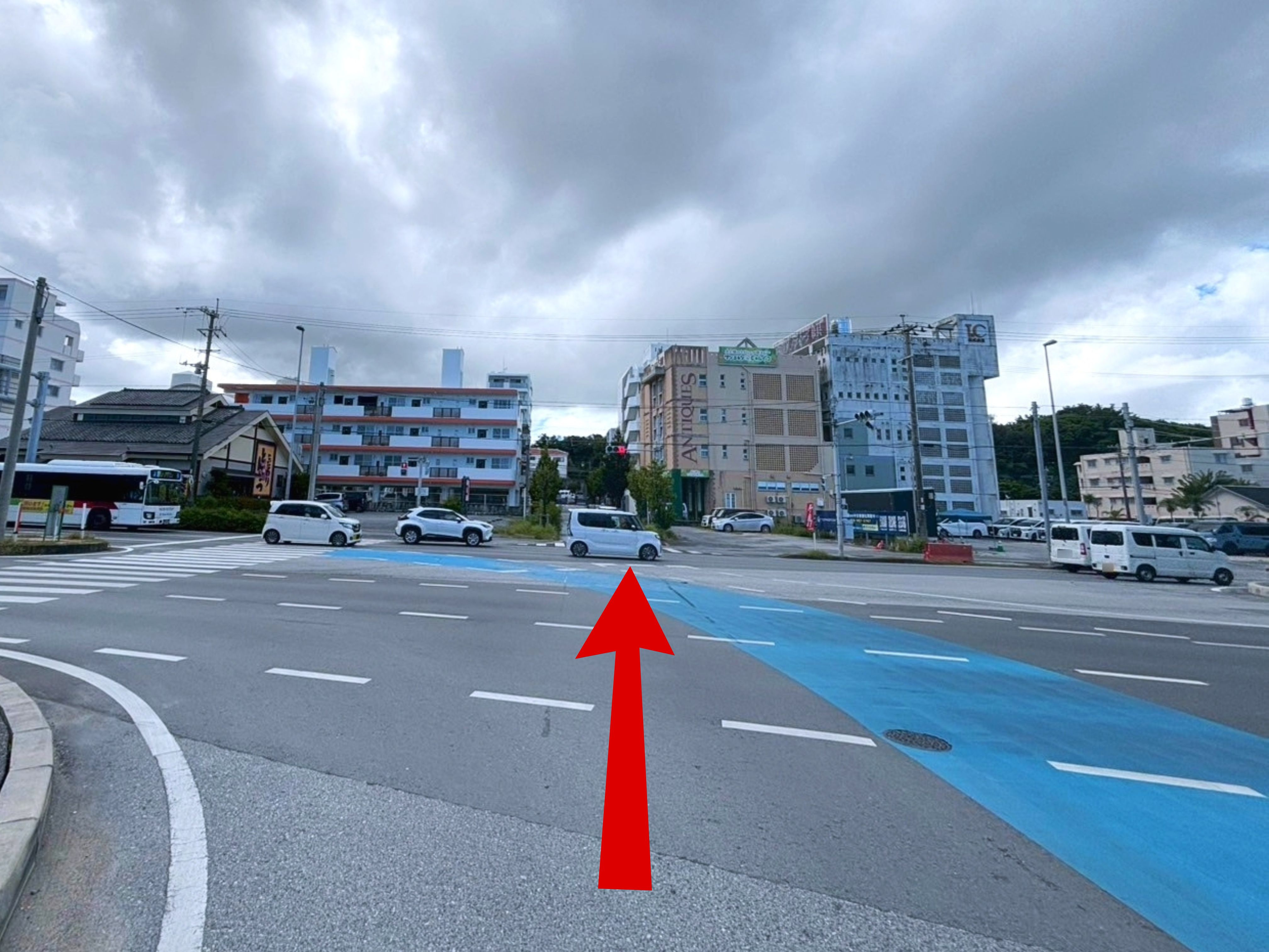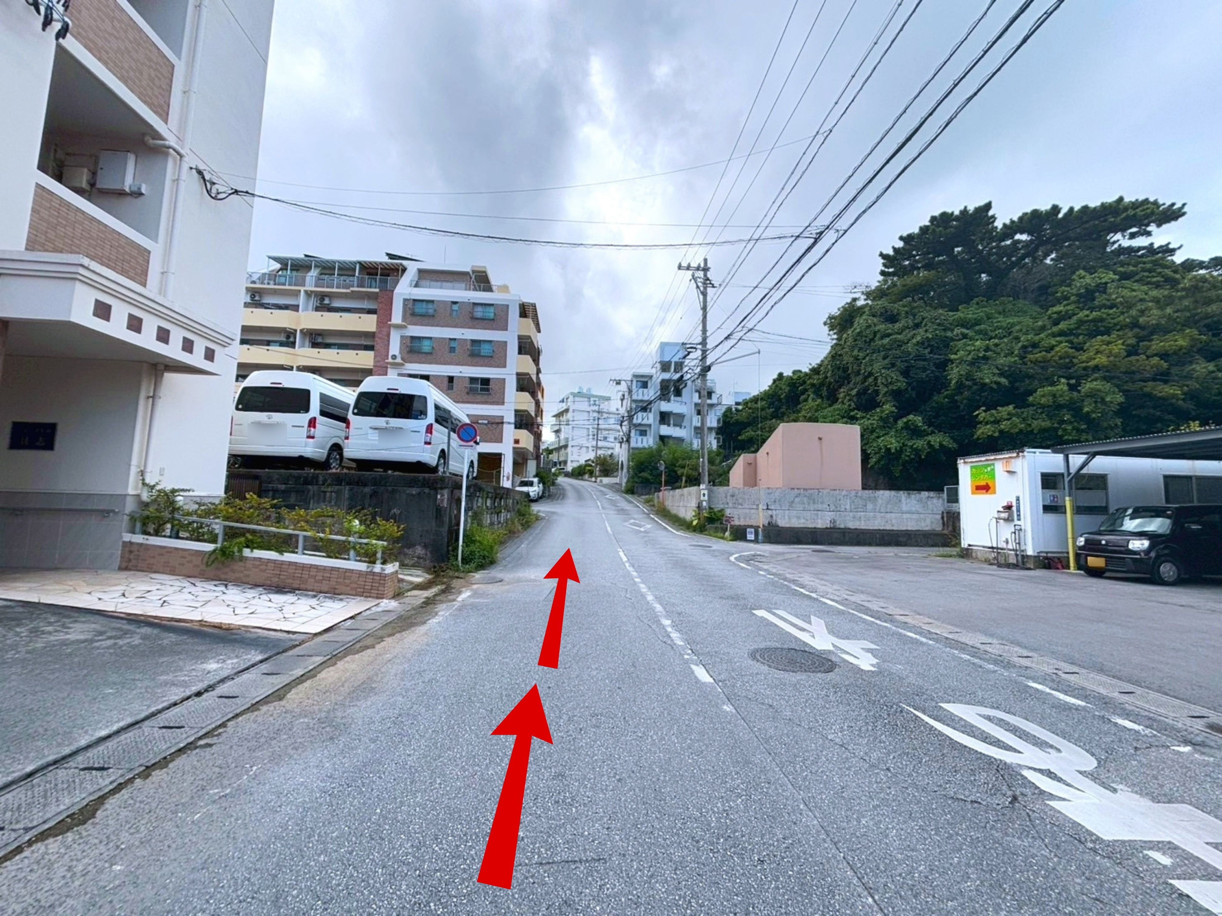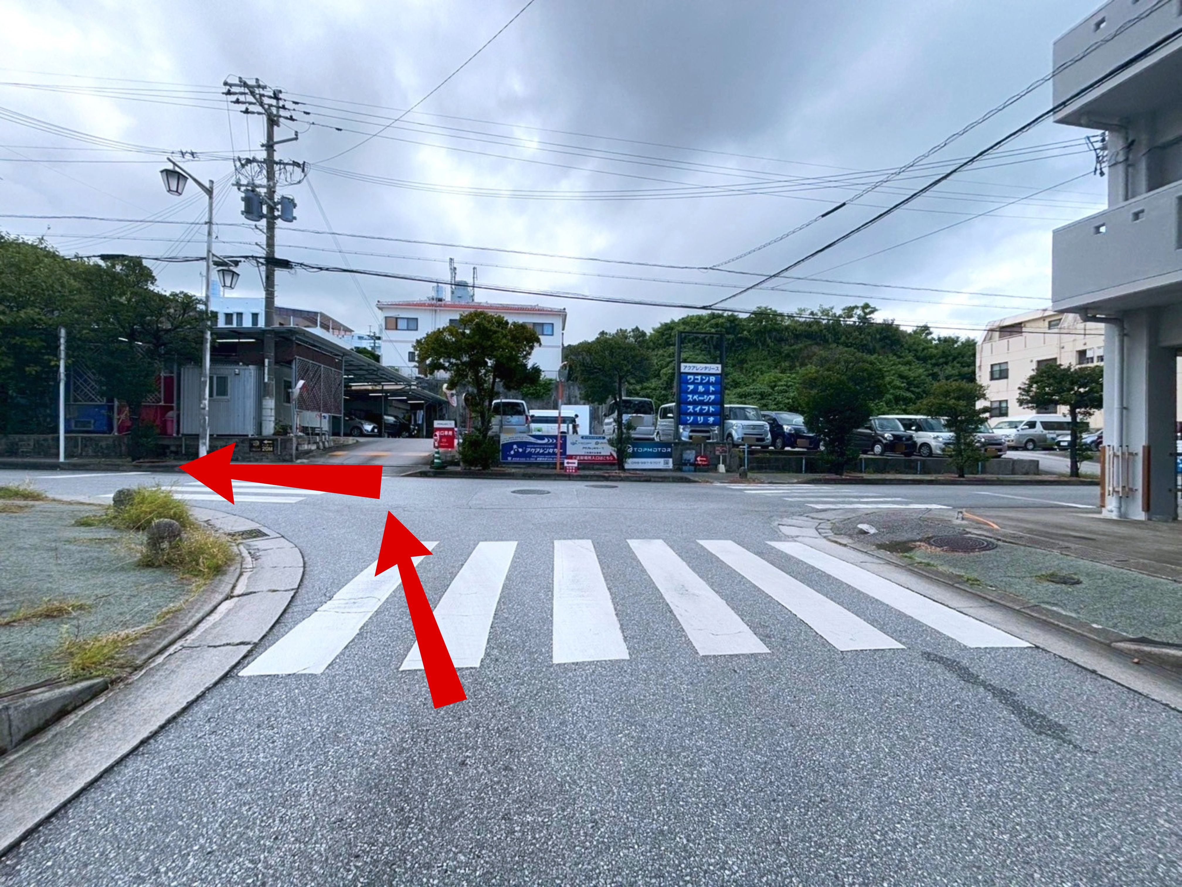 ◆目印の【とんかつ太郎 小禄店】の交差点から住宅街にはいります