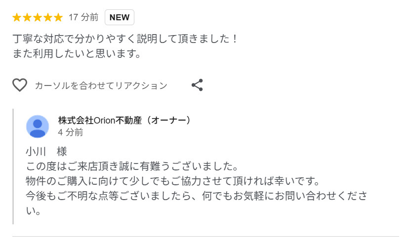 ご丁寧な対応でとても分かりやすい説明でとてもよかったです!